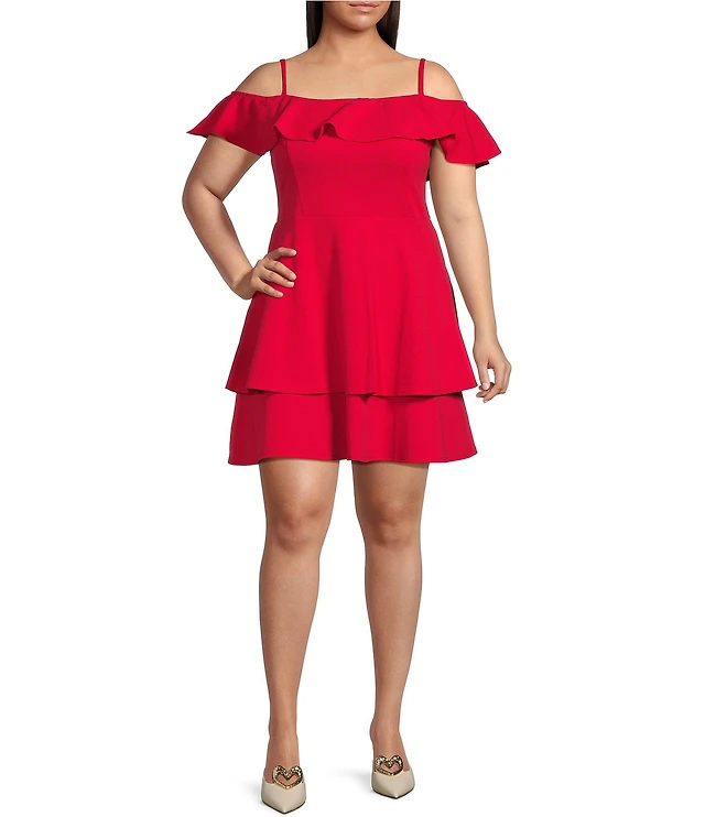 B. Darlin Plus Size Off The Shoulder Ruffle Double Hem Dress