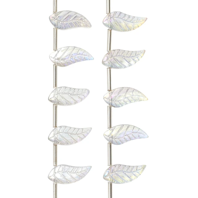 Clear Aurora Borealis Glass Leaf Beads, 17mm by Bead Landing™