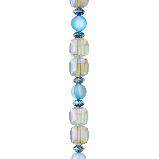 12 Pack: Aqua Mixed Glass Round & Cube Beads by Bead Landing™