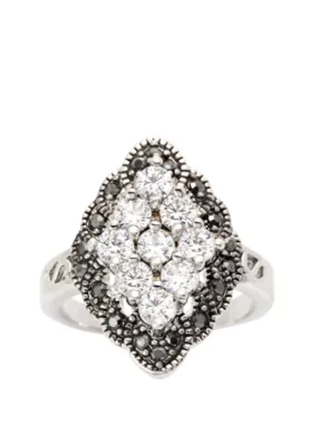 Silver-Tone Cubic Zirconia Crystal Pave Stone Ring