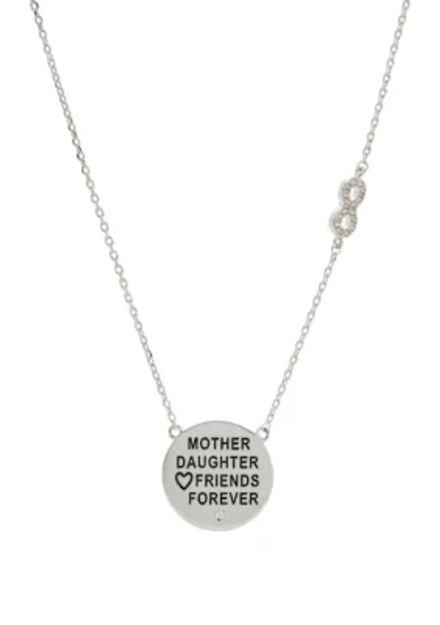 Silver-Tone Cubic Zirconia Mother and Daughter Pendant Necklace