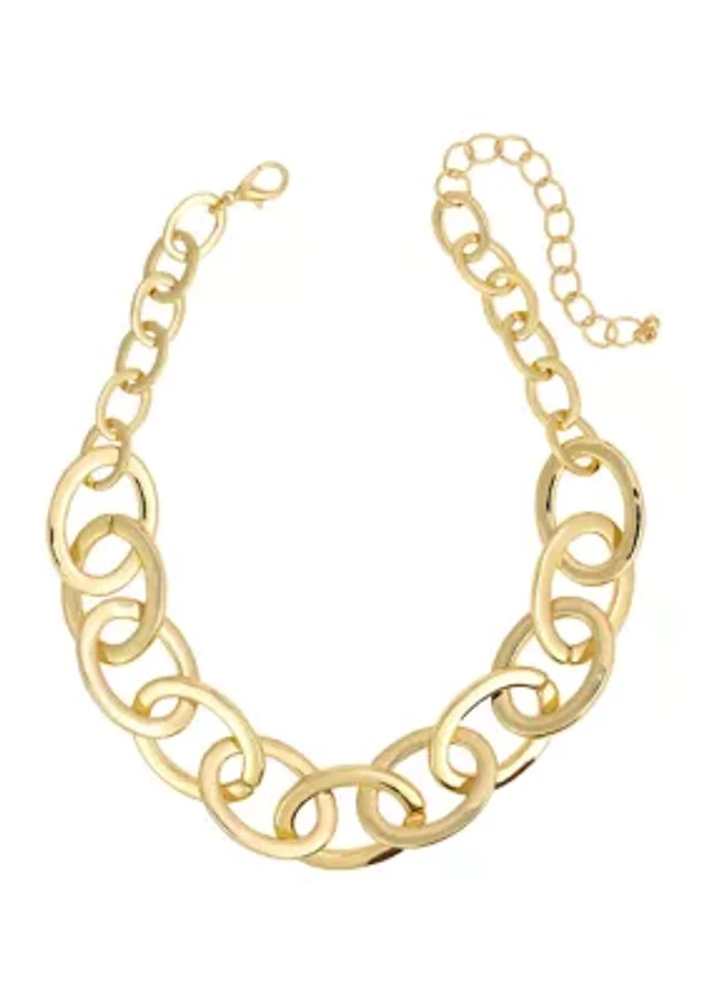 Gold Tone Short Bold Open Oval Link Frontal Necklace