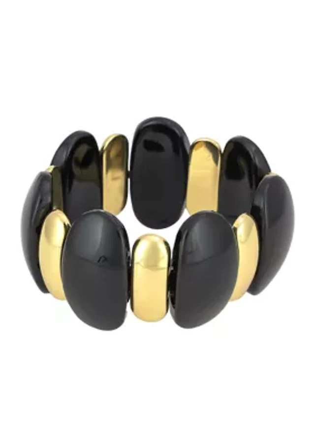 Gold Tone Black Bead Stretch Bracelet