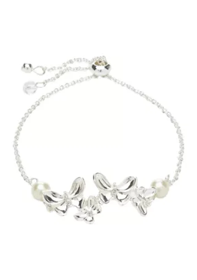 Silver Tone Pearl Crystal Butterfly Slider Bracelet