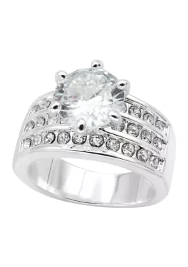 Lab Created Silver Cubic Zirconia Three Row Ring