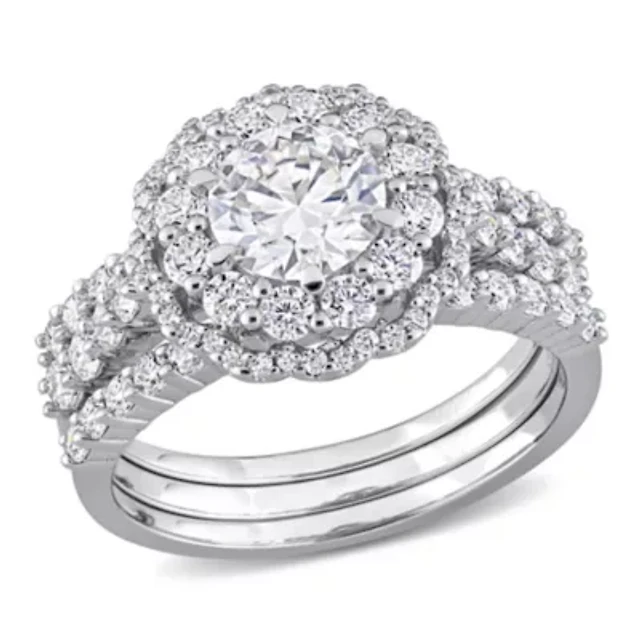 Lab Created White Moissanite Bridal Ring Set 10K Gold