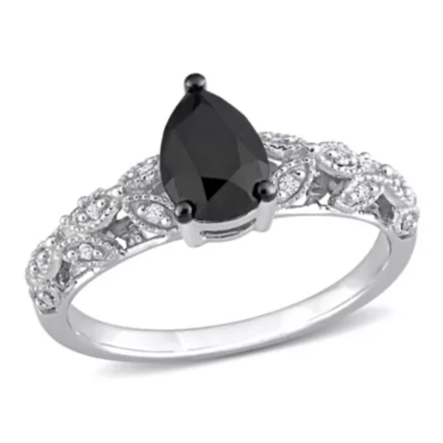 4/5 ct. t.w. Black Diamond Engagement Ring Sterling Silver with Rhodium Plated