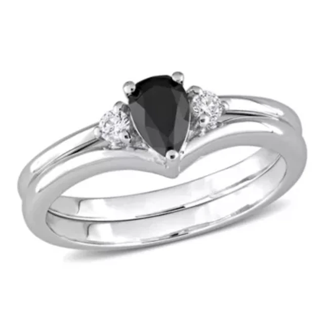 1/2 ct. t.w. Black and White Diamond Bridal Ring Set 10K Gold with Rhodium Plated