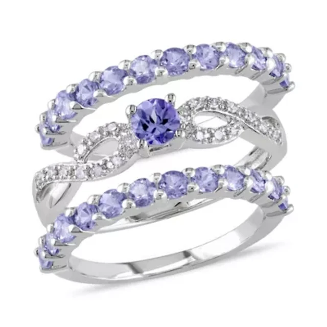 Lab Created Color Gemstone & Grown Diamond Semi Eternity Ring