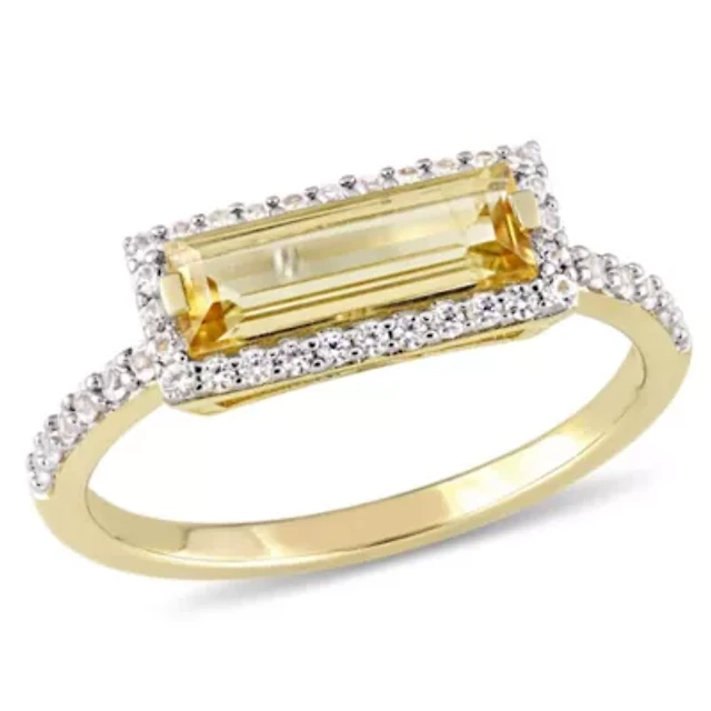 Green Quartz & White Topaz Ring Yellow Plated Sterling Silver