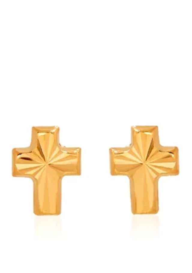 14k Yellow Gold Baby Cross Stud Earrings