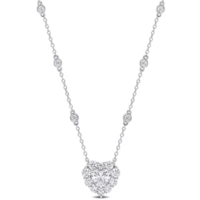 Lab Created Created Moissanite-White Heart Necklace with Chain in Sterling Silver