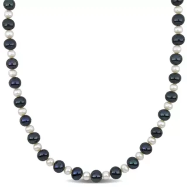 Freshwater Cultured Pearl and Black Freshwater Cultured Pearl Necklace with Sterling Silver Clasp