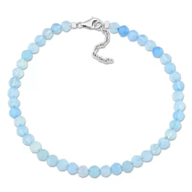 Aquamarine Bead Necklace in Sterling Silver, 16.5"+2"