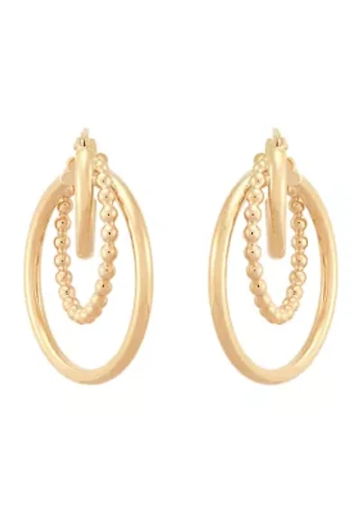 Diamond Cut Bead Bangle and Stud Earrings Set in 10K Yellow Gold