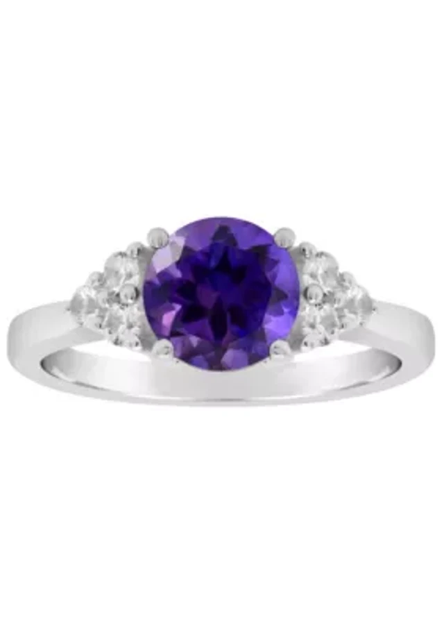 Sterling Silver 6x4mm Oval Amethyst and White Topaz Accent Earrings
