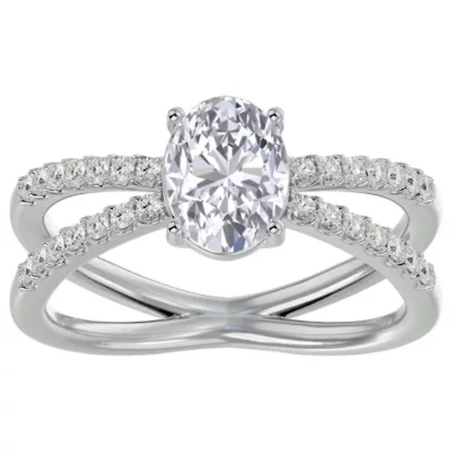 Lab Created 1 1/2 ct. t.w. Oval Shape Moissanite and Halo Diamond Ring Sterling Silver