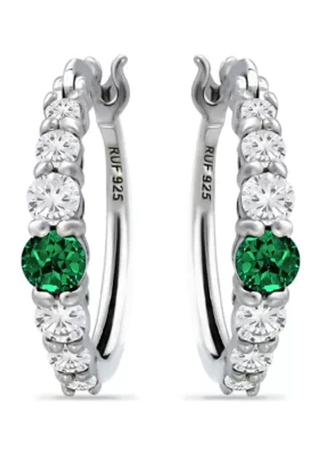 1/2 ct. t.w. Nano Emerald and 5/8 ct. t.w. Created White Sapphire Hoop Earrings in Sterling Silver