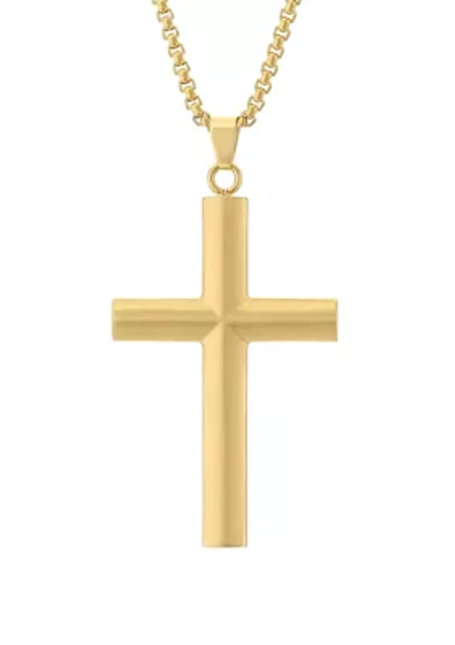 Stainless Steel Cross Pendant with Gold Tone Ion Plating