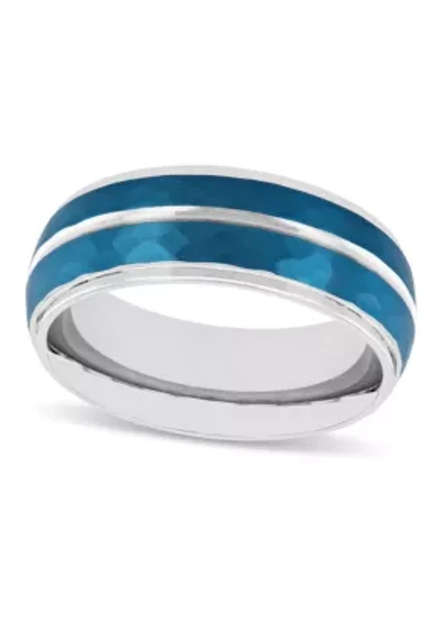 Blue Hammered 8mm Step Edge Band in Stainless Steel