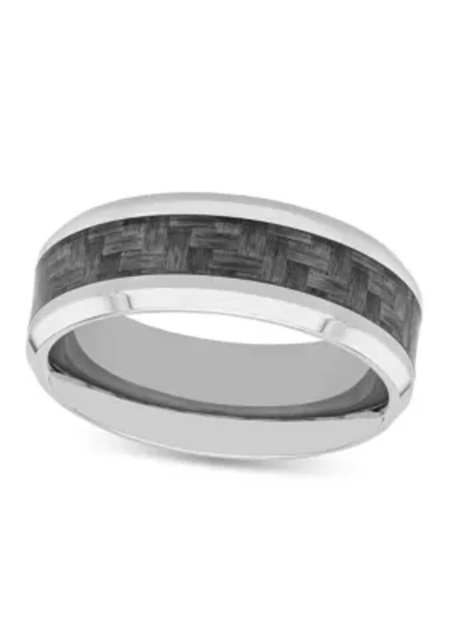Patterned Inlay Step Edge 8mm Band in Two-tone Stainless Steel