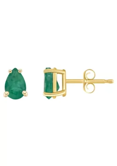 14K Gold 7x5mm Emerald Cut Aquamarine Stud Earrings