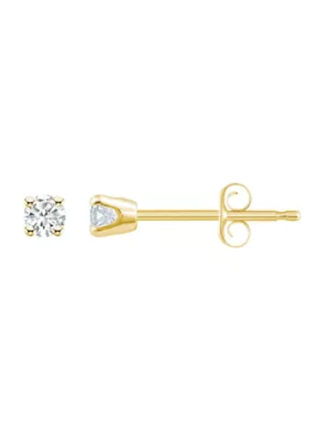 14K Gold 5mm Round White Topaz Diamond Accent Stud Earrings