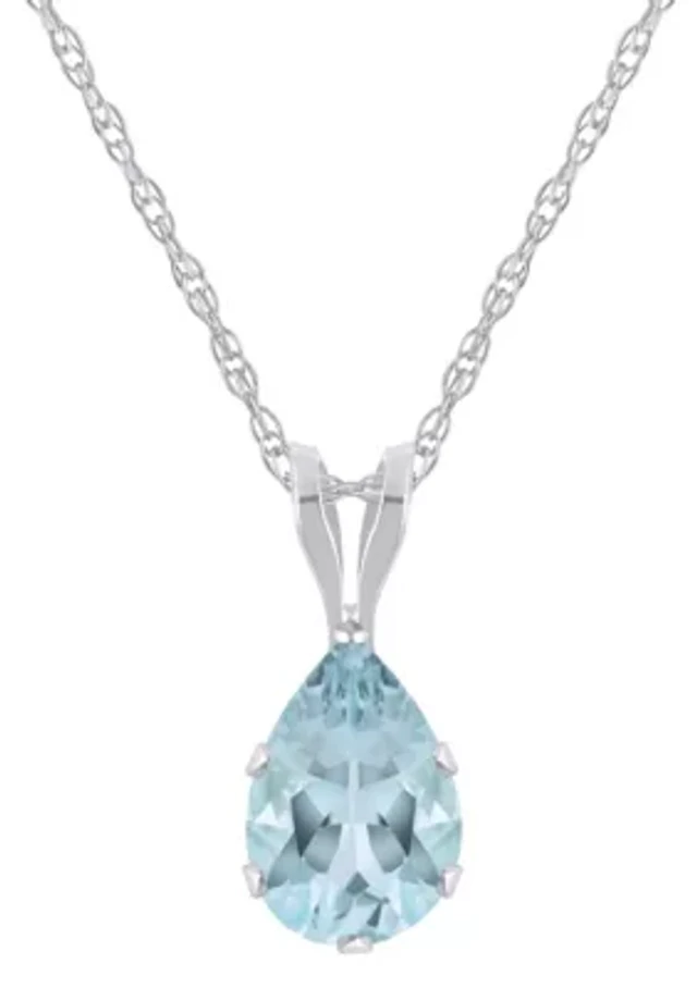 10K Yellow Gold 7x5mm Pear Shape Aquamarine Pendant Necklace