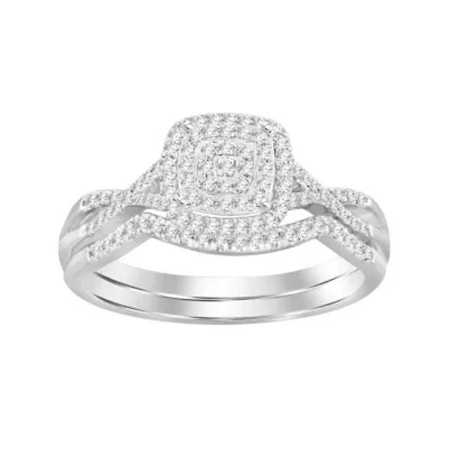 Lab Created Carat Halo Grown Diamond Bridal Set Sterling Silver