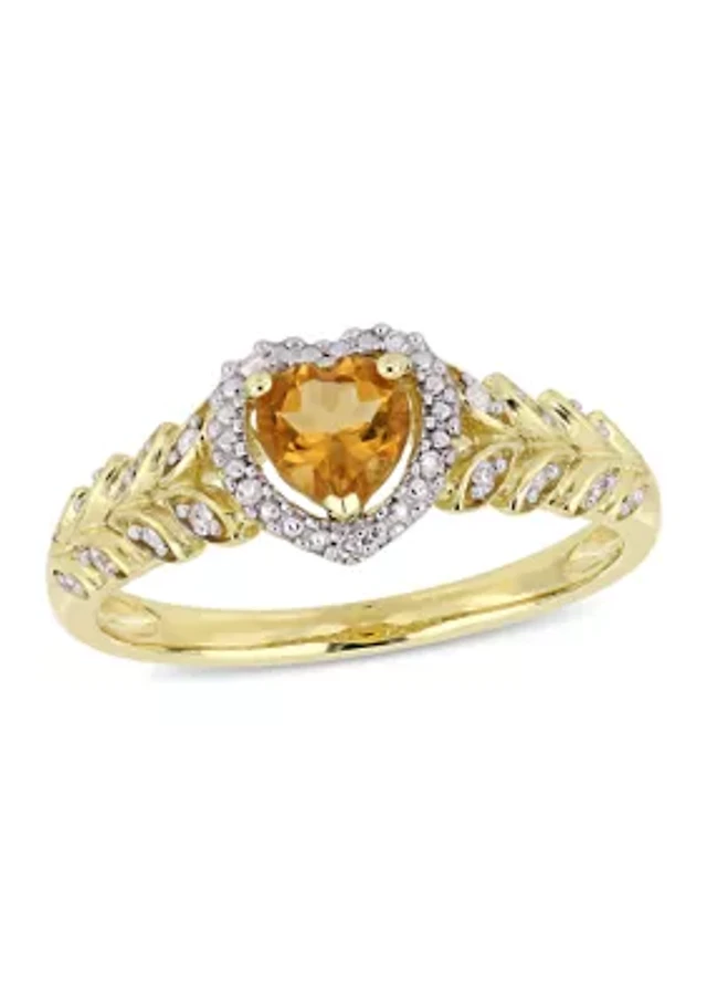 Heart Shaped Garnet and 1/10 CT TW Diamond Promise Ring 10k Rose Gold