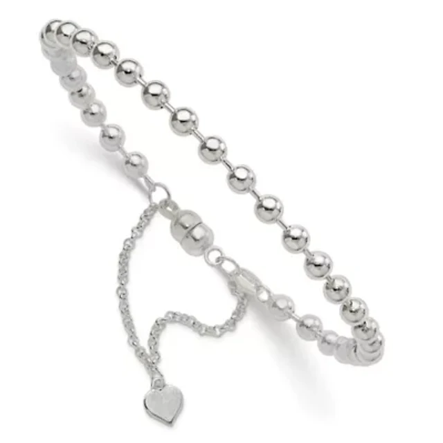 Sterling Silver Rhodium-plated Bead with Heart Bracelet