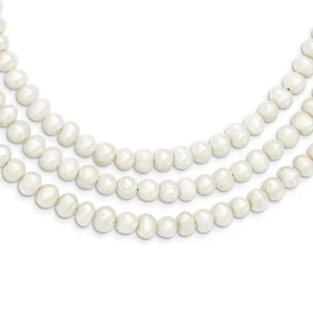 Sterling Silver Triple Strand White Freshwater Cultured Pearl Necklace