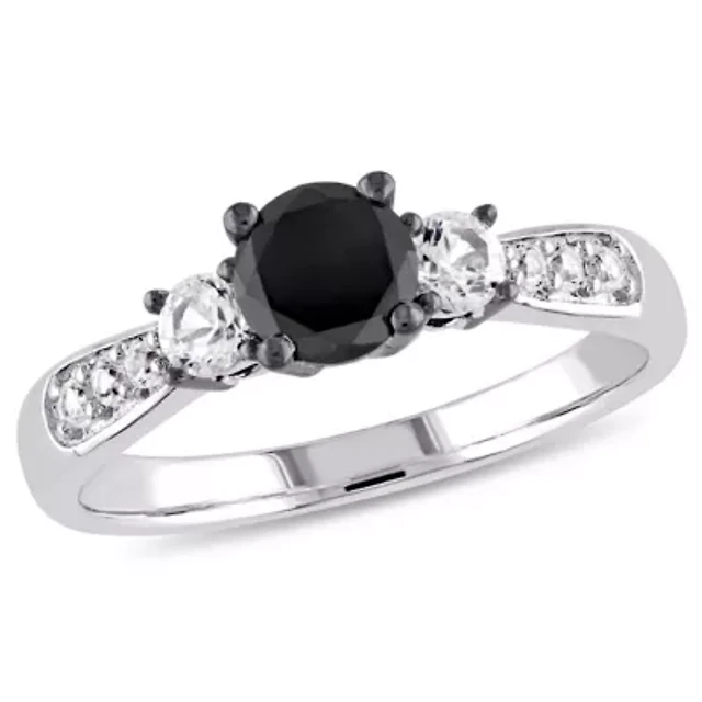 1.57 ct. t.w. Black and White Diamond Engagement Ring 14K Gold with Rhodium Plated