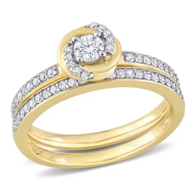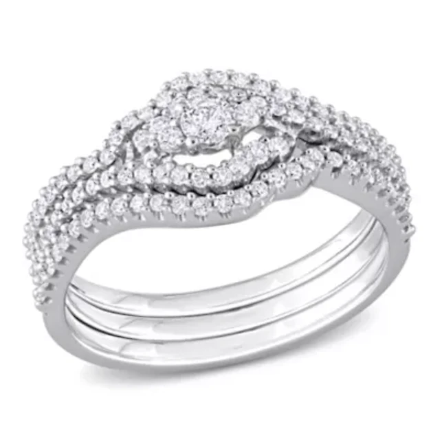 Lab Created White Sapphire Anniversary Ring Set 10K 3-Tone Gold