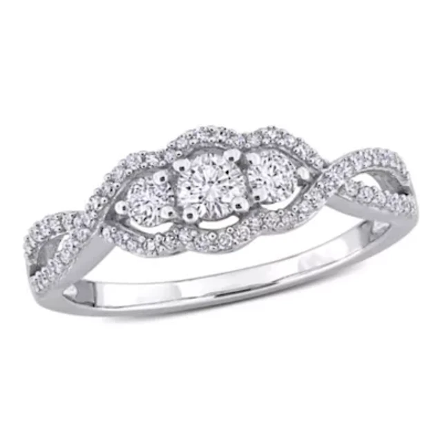 Lab Created White Sapphire 3-Stone Bridal Ring Set 10K Gold