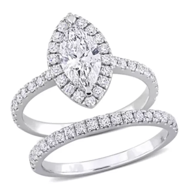 2 Piece 1 ct. t.w. Diamond Marquise Halo Bridal Set 14k White Gold