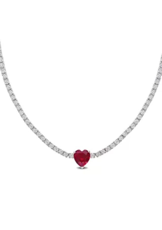 3/5 ct. t.w. Ruby and 2/5 Diamond Double Halo Heart Ring 14k White Gold with Yellow Prongs