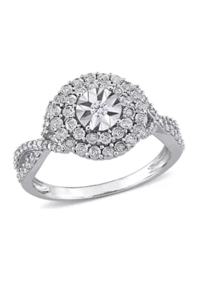 3/8 Ct TW Diamond Halo Engagement Ring 10k White Gold