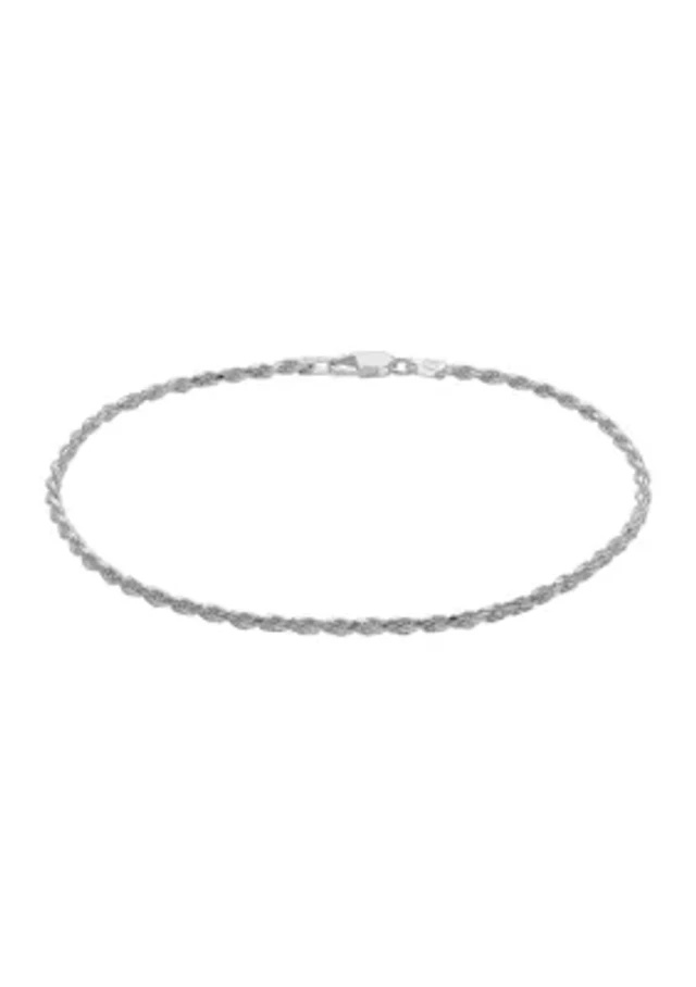 8" Silver Tone Diamond Cut Rope Chain Bracelet