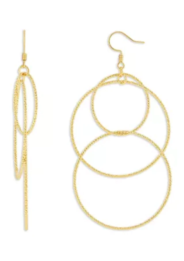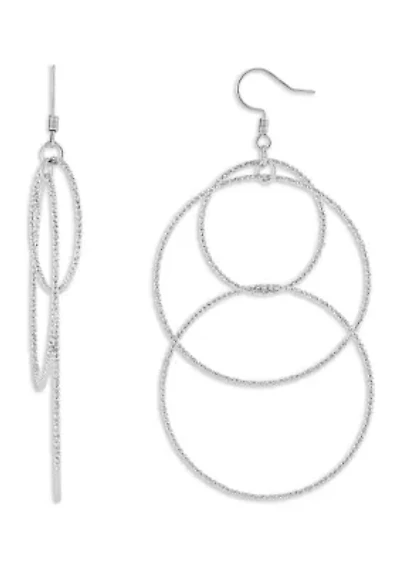 Fine Silver Plated Polished Double Interlocking Hoops Drop Earrings