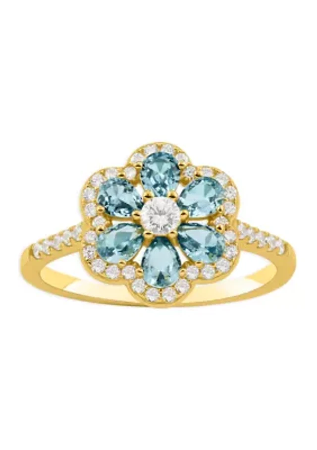 Cubic Zirconia Stone Flower sterling Band Ring