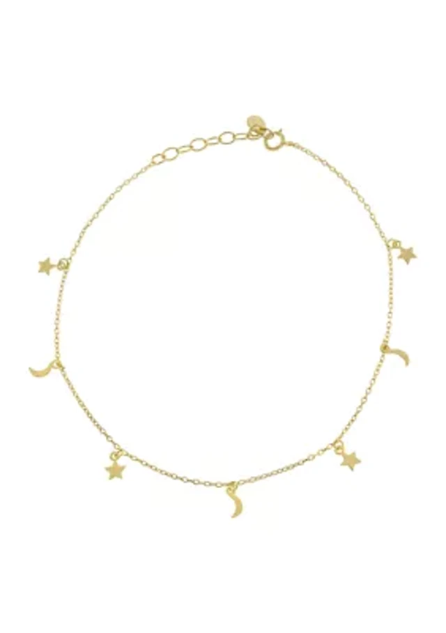 Yellow Gold Over Sterling Silver Mirror Chain Anklet
