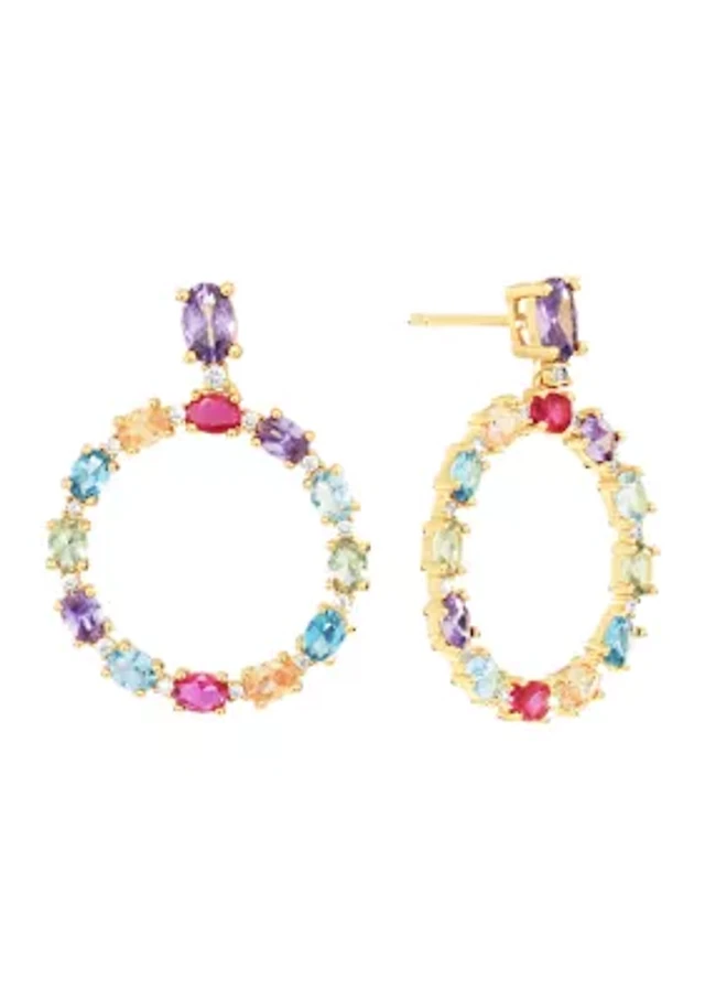 Silver Plated Multi Color Cubic Zirconia Drop Earrings