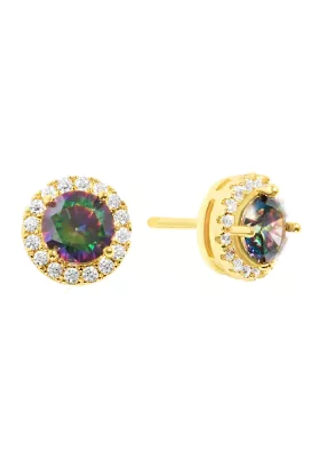 Sterling Silver Light Aqua Crystal and Cubic Zirconia Halo Stud Earrings