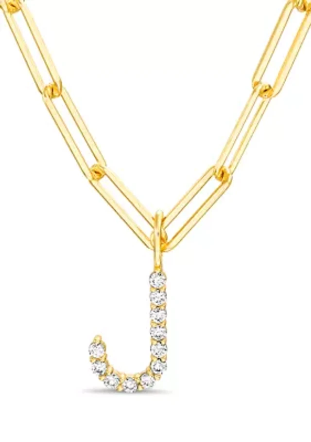 Gold Plated Paper Clip Chain Stone Pendant Necklace