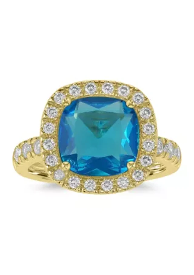 Gold Plated Cushion Cut Pink Cubic Zirconia Halo Ring