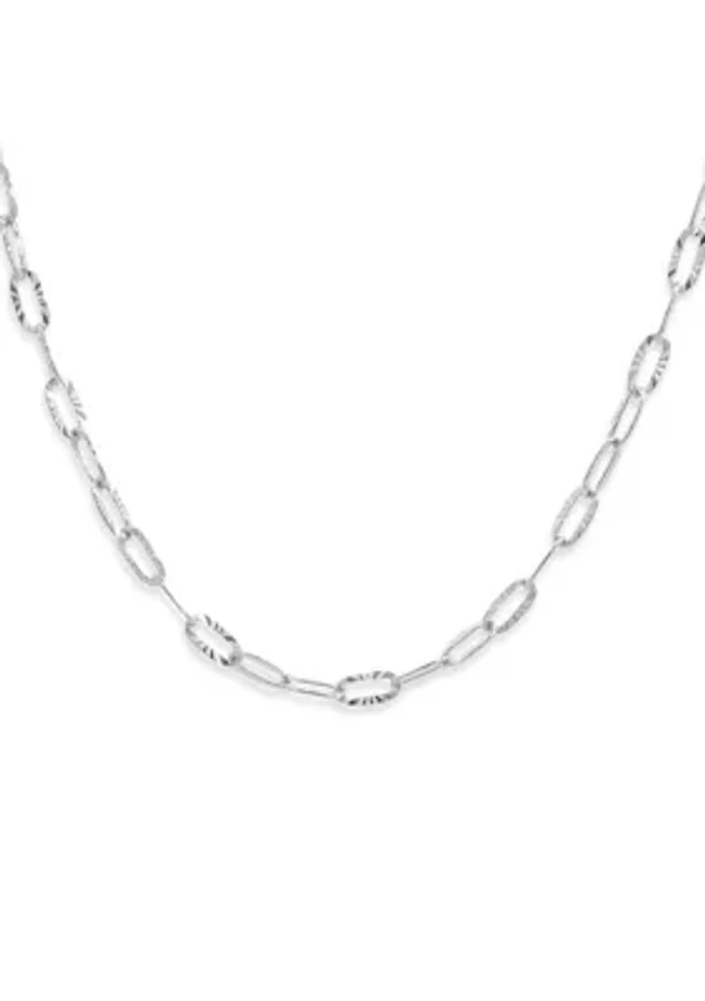Sterling Silver Polished Flat Valentino Link Chain Necklace