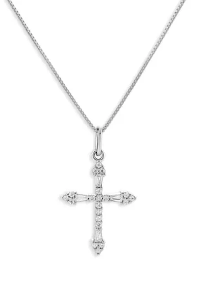 Sterling Silver Cubic Zirconia Cross Pendant Necklace
