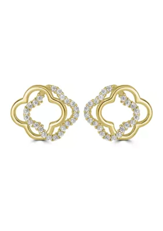 Gold over Sterling Silver Pavé Cubic Zirconia Open Clover Stud Earrings