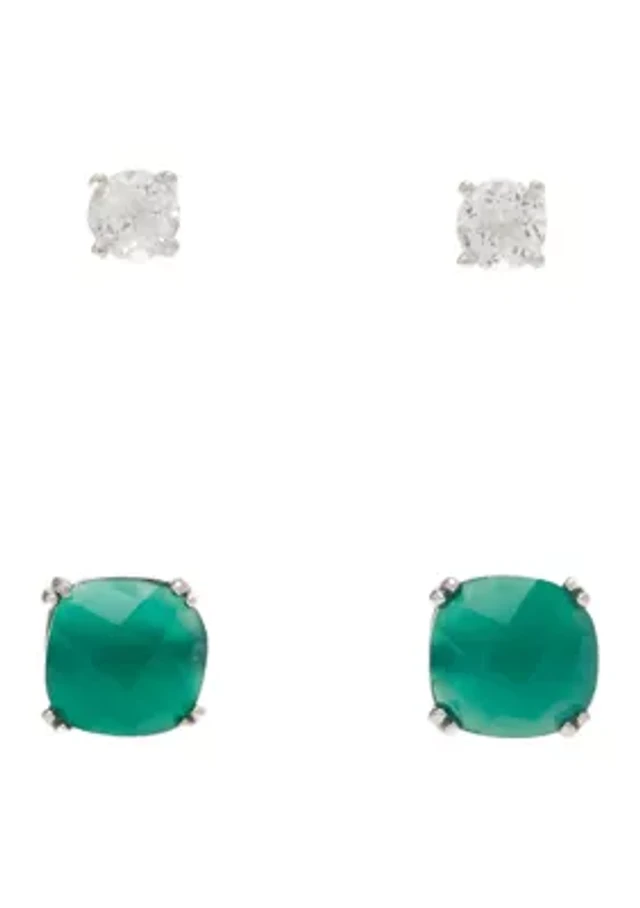 Sterling Silver Cubic Zirconia Stud Earrings Set